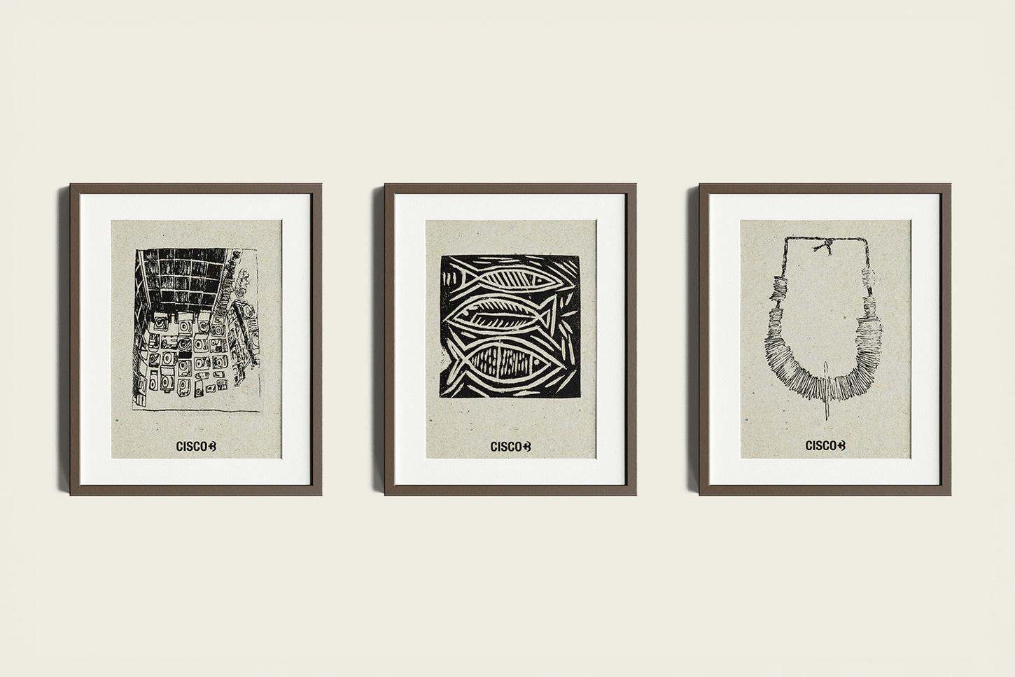 Um caderno pode ser um objeto banal do dia a dia. Ou pode ser uma tela preenchida com símbolos de ancestralidade, um objeto que promove autoconhecimento e inicia conversas sobre pertencimento étnico toda vez que alguém olha e pergunta "de onde veio isso?". A Cisco nasceu dessa intenção: usar objetos do cotidiano para reconectar pessoas com histórias que o tempo tentou apagar. Quando Genor e Zanza (os fundadores) me procuraram para desenvolver a identidade da Cisco, eles já tinham um nome e um símbolo cheios de significado. Meu papel foi construir um sistema visual à altura.